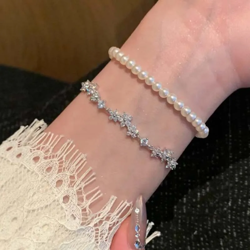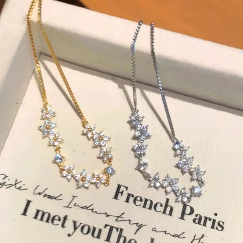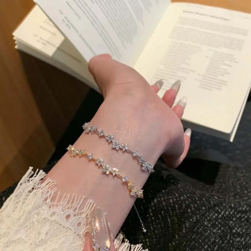 Elegant Shiny Zircon Flower Bracelet - Adjustable Fashion Jewelry for Every Occasion